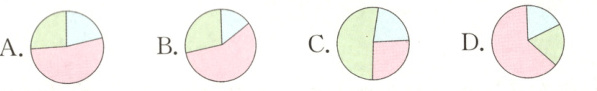 2. “六一”活动中,班级要准备气球布置场地。六(8)班的45个学生最喜欢的气球颜色情况统计如下表。下面统计图中最符合下表的是( )。