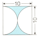 面积:$10^{2}-3.14×(10÷2)^{2}=21.5$(平方厘米)