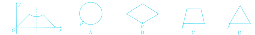 5. 已知点P为某个封闭图形边界上一定点,动点M从点P出发,沿其边界顺时针匀速运动一周,设点M的运动时间为x,线段PM的长度为y,表示y与x的函数图象大致如图所示,则该封闭图形可能是 ( )
