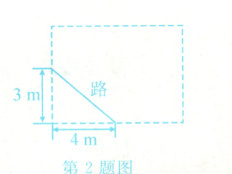 2. 如图,学校有一块长方形花圃,有极少数人为了避开拐角走“捷径”,在花圃内走出了一条“路”(如图中的实线). 其实他们仅仅少走了________m,却踩伤了花草.