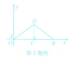 2. 如图,长为8 cm的橡皮筋放置在x轴上,固定两端A和B,然后把中点C向上拉升3 cm到点D,则橡皮筋被拉长了________ cm.