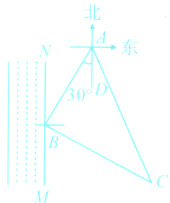 5. 如图,小明的家位于一条南北走向的河流MN的东侧A处,某一天小明从家出发沿南偏西30°方向走60 m到达河边B处取水,然后沿另一方向走80 m到达菜地C处浇水,最后沿第三方向走100 m回到家A处. 问小明在河边B处取水后是沿哪个方向行走的?并说明理由.
