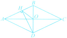 11. 如图,菱形ABCD的对角线AC,BD相交于点O,过点D作DH⊥AB于点H,连接OH,若$OA = 6,S_{菱形ABCD}= 48,$则OH的长为__________.