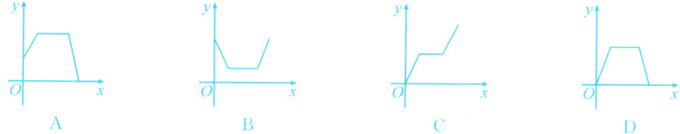 6. 某洗衣机在洗涤衣服时经历了注水、清洗、排水三个连续过程(工作前洗衣机内无水),在这三个过程中洗衣机内水量y(升)与时间x(分钟)之间的函数关系对应的图象大致为 ( )