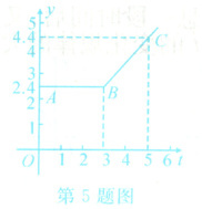 5. 如图所示中的折线ABC为甲地向乙地打长途电话需付的电话费y(元)与通话时间t(分钟)之间的函数关系,则通话8分钟应付电话费________元.