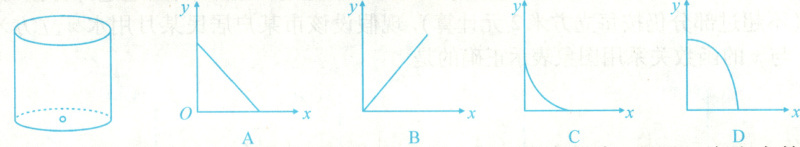 1.“漏壶”是一种古代计时器,在它内部盛一定量的水,不考虑水量变化对压力的影响,水从壶底小孔均匀漏出,壶内壁有刻度。人们根据壶中水面的位置计算时间,用x表示漏水时间,y表示壶底到水面的高度,下列图象适合表示y与x的对应关系的是 ( )