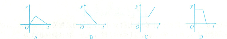 5.2024年初以来,红星消毒液公司生产的消毒液在库存量为m吨的情况下,日销售量与产量持平。自1月底抗击“新冠病毒”以来,消毒液需求量猛增,该厂在生产能力不变的情况下,消毒液一度脱销,下面表示2024年初至脱销期间,该厂库存量y(吨)与时间t(天)之间函数关系的大致图象是 ( )