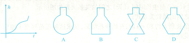 4.从某容器口以均匀的速度注入酒精,若液面高度h随时间t的变化情况如图所示,则对应容器的形状为 ( )