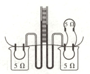 (2)让实验装置冷却到初始状态,把右瓶并联的两根电阻丝都放入瓶内,接通电源比较两瓶内电阻丝发热多少。此时该装置是探究电流产生的热量跟____的关系,一段时间后电阻丝产生的热量____(选填“左瓶”“右瓶”或“两瓶一样”)多。