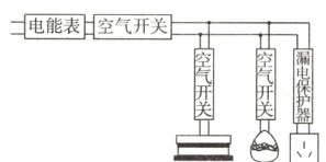 10. 如今,标准住宅的户内配电系统都使用了空气开关、漏电保护器、三孔插座等设备,现有一配电系统如图所示。其中各个设备的特征是 ( )