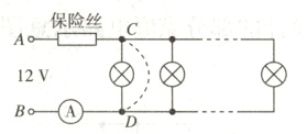 (3)小明只让一个小灯泡工作,在C、D两点间接入一段导线,他发现保险丝会马上______,该实验可以验证电路中电流过大的原因是____________________________。