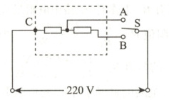 17. 一个双温电炉的电路图如图所示。虚线框内的发热体由两个阻值相同的电阻及导线连接而成,A、B、C为三段引出线,A为高温挡,B为低温挡,且高温挡功率为低温挡功率的2倍。请将图中虚线框内的电路图补充完整。