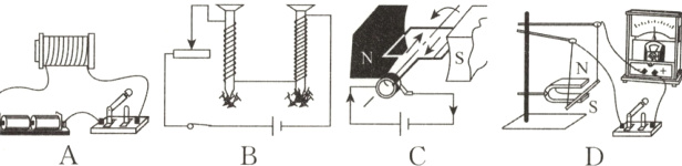 5. 如图所示的四个实验中,反映电动机工作原理的是 ( )