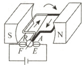 3. 如图是直流电动机的工作原理,下列相关的分析正确的是 ( )