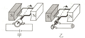10. 如图甲是磁信息阅读器,只要将磁卡刷过,检测头中就会产生感应电流,便能得到相应的信息。如图乙所示,当让左边装置中的导体a在磁体中水平向右运动时,右边装置中的导体b也会跟着向右运动。下列说法正确的 ( )