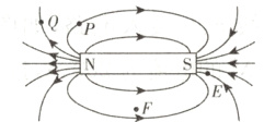 2. 如图是条形磁体的磁感线分布,图中的E、F、P、Q四点中,磁场最强的是 ( )