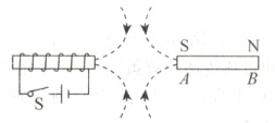 16. 请在图中标出四条磁感线的方向以及磁体AB的磁极。
