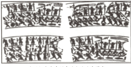 材料一 战国时期,造船技术有较大进步。船的种类很多,有运输船、战船等。下图是战国铜壶壶身刻有的水陆攻战图案。从图中看出,那时的人们已用长桨划船。