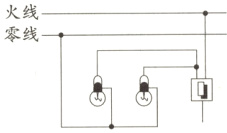 19. 将图中的两盏节能灯接入家庭电路中。要求:开关同时控制两盏灯,且开关闭合时两灯都能正常发光。