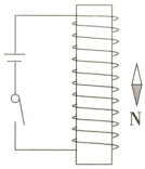 15. (临夏州中考)如图所示,开关闭合后,位于螺线管附近的小磁针N极指向向下,请在螺线管上画出导线的绕向。