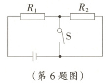 6. 如图所示,电源电压不变,当开关S闭合与断开时,R1两端电压之比为4:3,则S断开时,R1与R2消耗的功率之比是( )