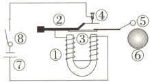 11. 某校开展物理课外科技活动,其内容是设计制作一个电铃。小华同学选择了如下器材:①蹄形电磁铁、②弹簧片、③衔铁、④螺钉、⑤小锤、⑥铃、⑦电源、⑧开关和若干导线(如图)。请你用笔画线代替导线将电路连接好,使开关闭合后电铃能不断发声。