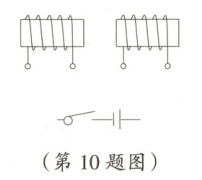 10. 画出能使图中两个通电螺线管相互排斥的电路图,并标出两个螺线管的N极。
