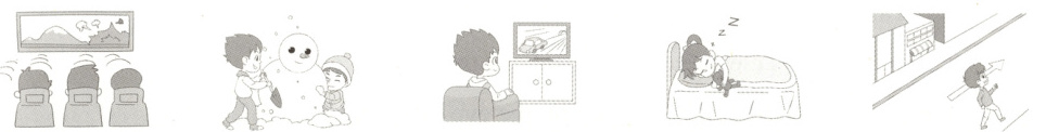 A. watch TV B. go to bed C. go down the street D. see a film E. make a snowman