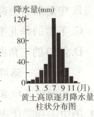 自然原因(注意观察右边“黄土高原逐月降水量柱状分布图”):____________________;人为原因:____________________。