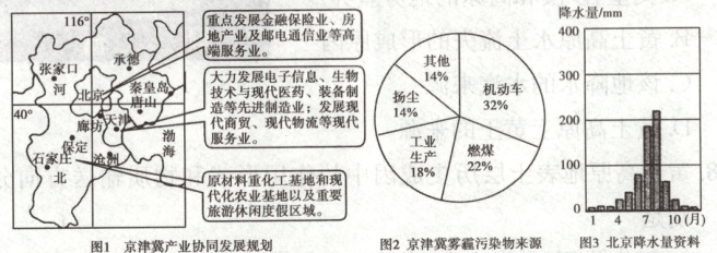 (5)请结合图3,简要分析北京缺水的自然原因。