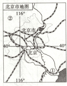 ①位于华北平原的北部边缘,背靠群山 ②有众多的名胜古迹 ③是全国最重要的交通运输枢纽之一 ④我国大城市之一