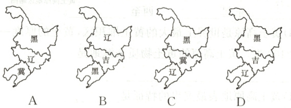 1. 下列对东北三省简称的标注,正确的是 ( )