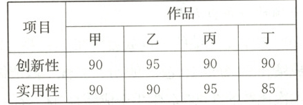 10. 某校为推荐一项作品参加“科技创新”比赛,对甲、乙、丙、丁四项候选作品进行量化评分,具体成绩(百分制)如下表: