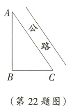 22. 如图,学校B前面有一条笔直的公路,学生放学后走AB,BC两条路可到达公路.经测量BC=6 km,AB=8 km,AC=10 km.现需修建一条从学校B到公路距离最短的路,则学校B到公路的最短距离为______.