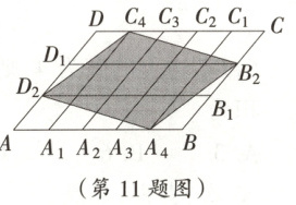11. 如图,在□ABCD中,点A₁,A₂,A₃,A₄和C₁,C₂,C₃,C₄分别是AB和CD的五等分点,点B₁,B₂和D₁,D₂分别是BC和DA的三等分点,已知四边形A₄B₂C₄D₂的面积为1,则□ABCD的面积为 ( )