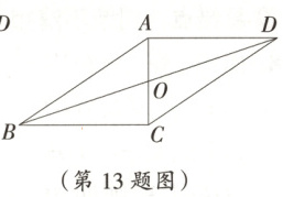 13. 如图,在□ABCD中,AC,BD相交于点O,AB=10 cm,AD=8 cm,AC⊥BC,则OB= ( )