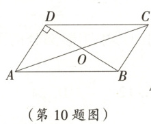 10. 如图,在□ABCD中,已知∠ODA=90°,AC=10 cm,BD=6 cm,则AD的长为 ( )