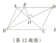 12. 如图,在周长为20 cm的□ABCD中,AB≠AD,AC,BD相交于点O,OE⊥BD,交AD于点E,则△ABE的周长为 ( )
