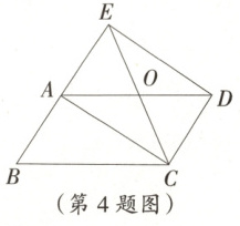 4. 如图,AC是□ABCD的对角线,延长BA至点E,使AE=AB,连接DE,连接EC交AD于点O,若∠EOD=2∠B,