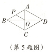 5. 如图,菱形ABCD中,AC与BD相交于点O,P为AB的中点,连接OP且OP = 2cm,则菱形ABCD的周长为__________cm.