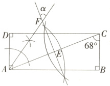 ∴∠DAC = ∠ACB = 68°。由作法可知,AF是∠DAC的平分线,EF是线段AC的垂直平分线,