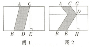 解:如图 1,过点 C 作 CE⊥BE,如图 2,过点 D 作 GH⊥AC,则图 1 中,四边形 ABDC 的面积 = AC·CE,图 2 中,阴影部分的面积 = AC·DG + AC·DH,