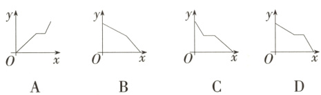 2. (教材P82,T8变式)为应对越来越严峻的交通形势,新区对某道路进行拓宽改造. 工程队在工作了一段时间后,因雨被迫停工几天,随后工程队加快了施工进度,按时完成了拓宽改造任务. 下面能反映该工程尚未改造的道路y(m)与时间x(天)的函数关系的大致图象是 ( )