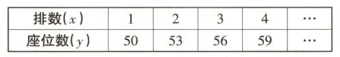 (3)某一排不可能有90个座位。理由:由题意可得$y = 3x + 47 = 90$,解得$x = \frac{43}{3}$。因为$x$不是整数,所以某一排不可能有90个座位。