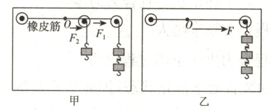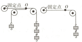 做法:先在橡皮筋的一端用两根绳分别挂两组钩码,记录橡皮筋伸长的位置,再用一根绳挂钩码,直至橡皮筋伸长到相同的位置,记录钩码的个数,比较合力与分力的关系。