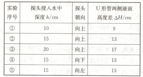 老师提供的器材有压强计、大水槽、刻度尺及足量的水,实验时将压强计的探头放在水中,U形管左右两侧液面高度差的大小可以反映薄膜所受压强的大小,如图所示。
