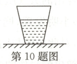 10.如图所示,盛有水的杯子静止在水平桌面上,杯子重1N,高9cm,底面积30cm²,杯内水重2N,水深6cm,水的密度为1.0×10³kg/m³,g取10N/kg。下列说法正确的是 ( )