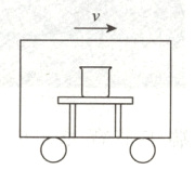 18. 如图所示,车上粗糙的水平桌面上有一水杯,杯中大约有半杯水,当车匀速行驶时,杯中的水静止;当刹车时,请用一直线表示水面,大致画出水面的趋势。