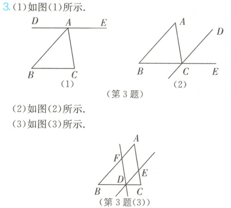 (3)如图(3),在BC上任意取一点D,分别过点D画DE//AB交AC于点E,画DF//AC交AB于点F.