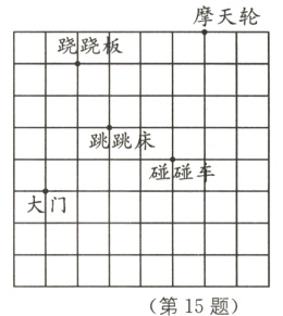 15 新情境 构建模型 (2024·山西太原期中)如图是游乐园一角的平面示意图,图中每个小方格的边长为1个单位长度,1个单位长度表示100 m.